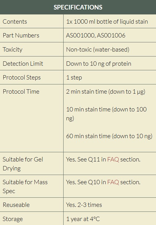“I am very happy with the AcquaStain … it does seem much more sensitive than my home made coomassie stain, with the additional benefit of no destaining.”