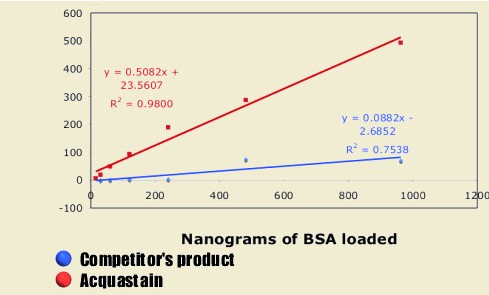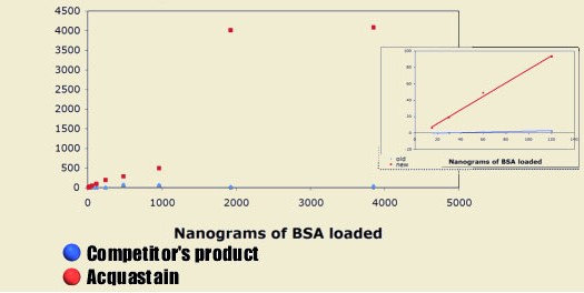 | AcquaStain shows a 50 fold greater signal when compared to a leading competitor |